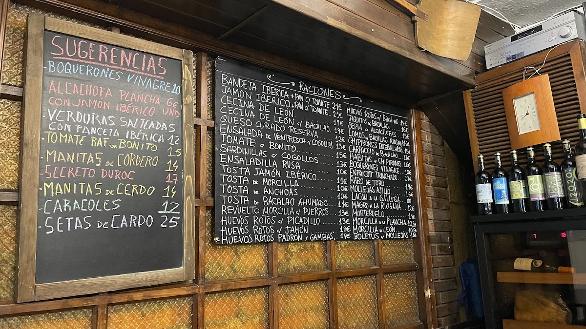 The menu features highlights such as Revuelto de Morcilla and Arroz con Bogavante, bringing forward rich, familiar flavors that pair well with a glass of Vino Finca Rio Negro or a freshly poured Vermú de Grifo. Lighter options like Ensalada Rusa or a Gran Aperitivo de Queso en Aceite fit perfectly for casual mid-day pauses or late afternoon indulgences.